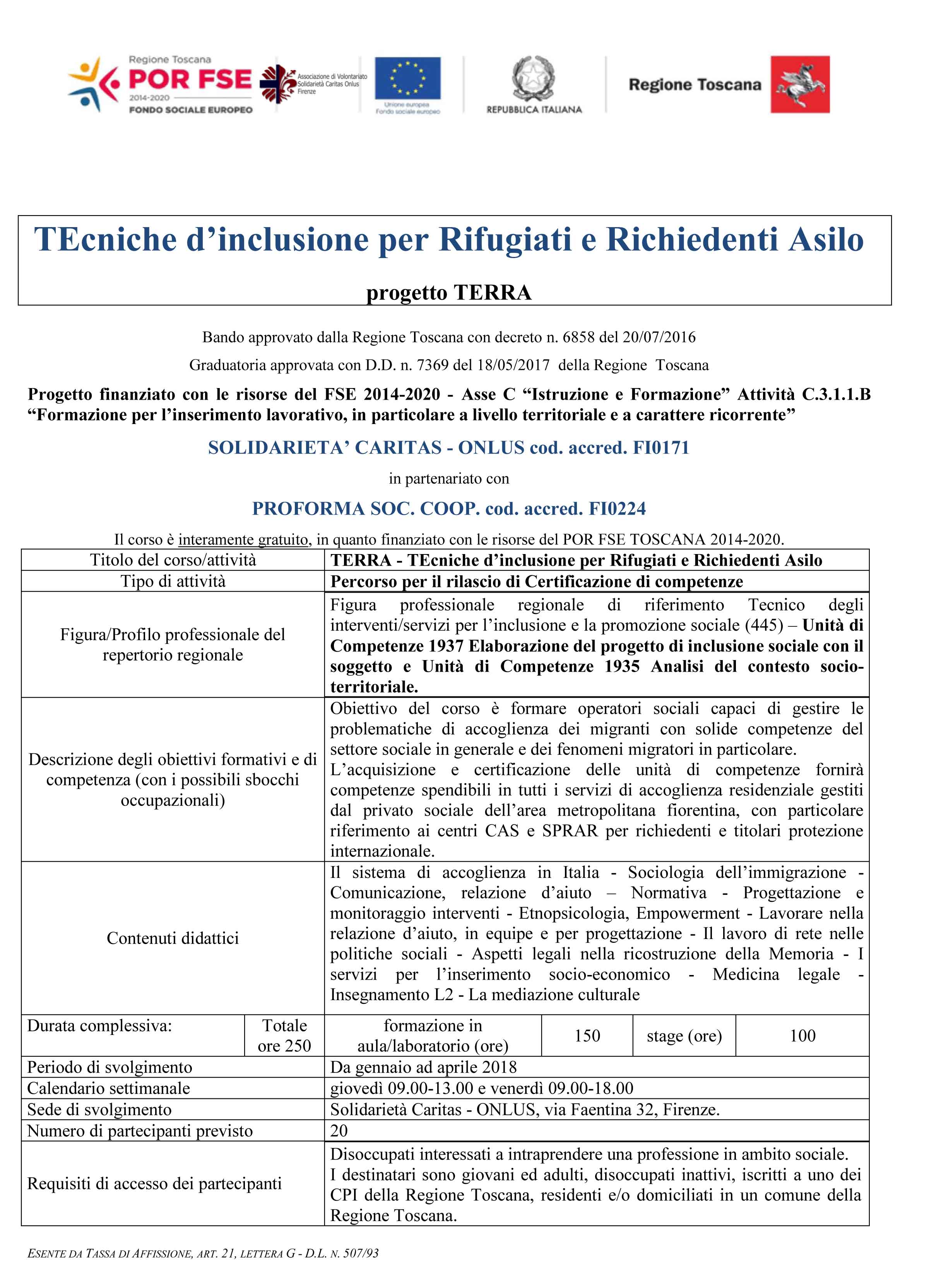 Sede di svolgimento: Solidarietà Caritas – ONLUS, via Faentina 32, Firenze.